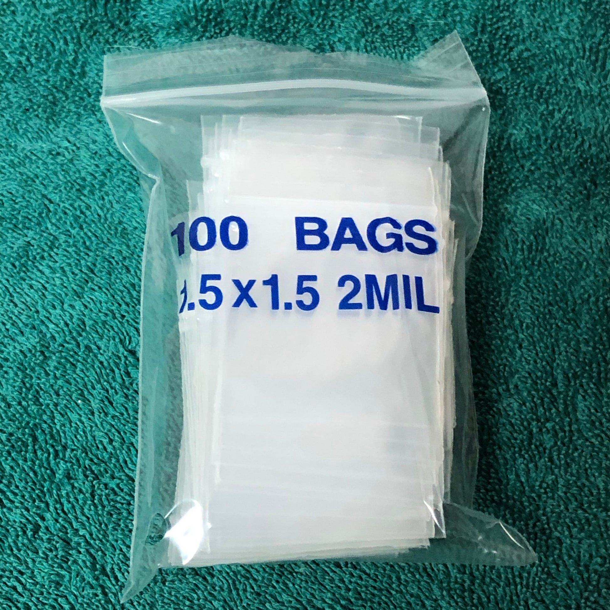 1 1/2 x 1 1/2" 2 Mil reclosable bags 100 bags per pack.