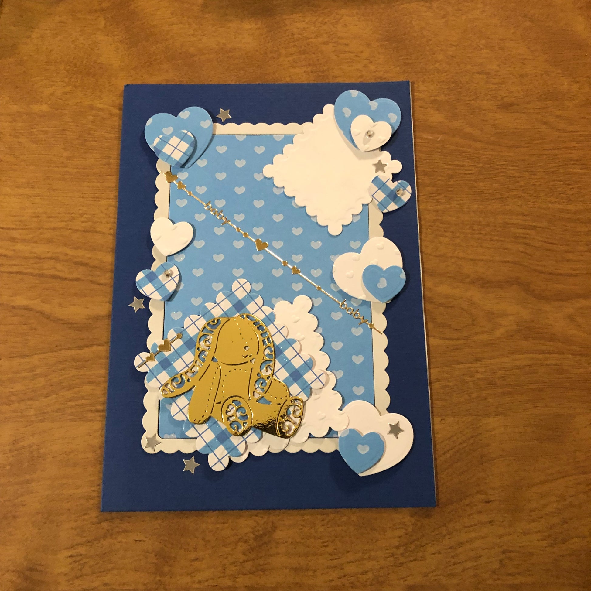 Blue New Baby Teddy Bear Congratulations Card Handmade