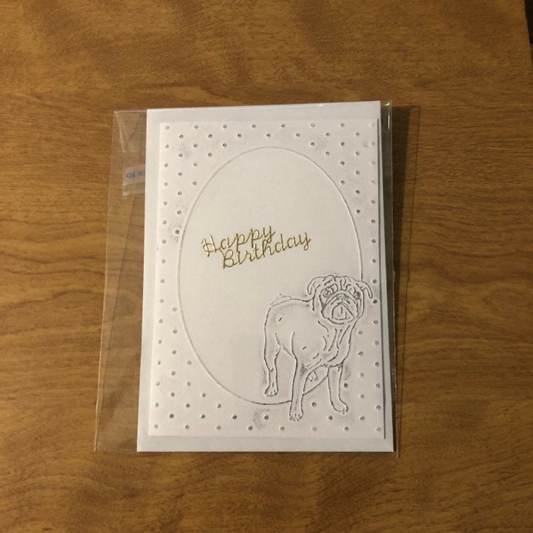 Happy Birthday Bulldog Stamped and Embossed Birthday card