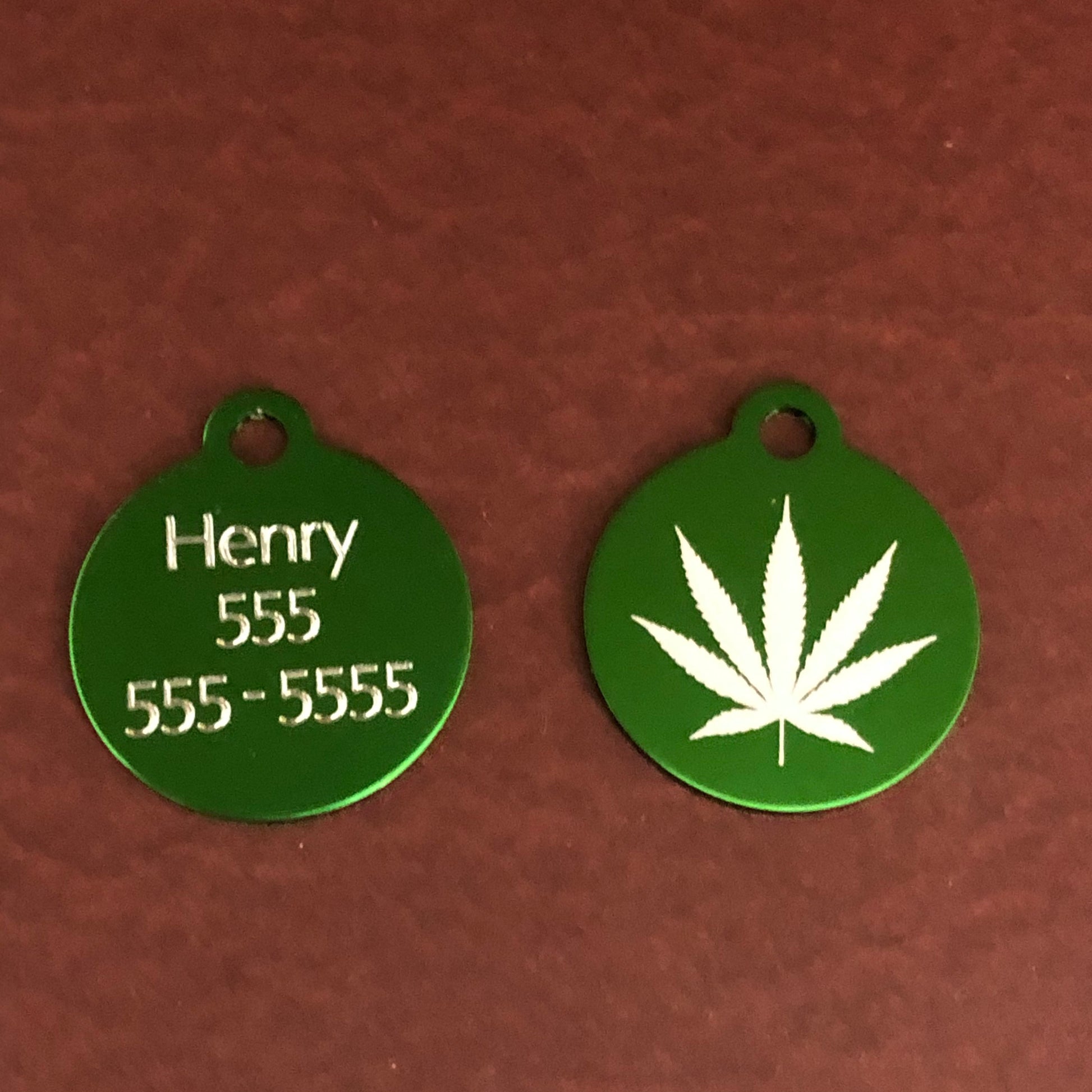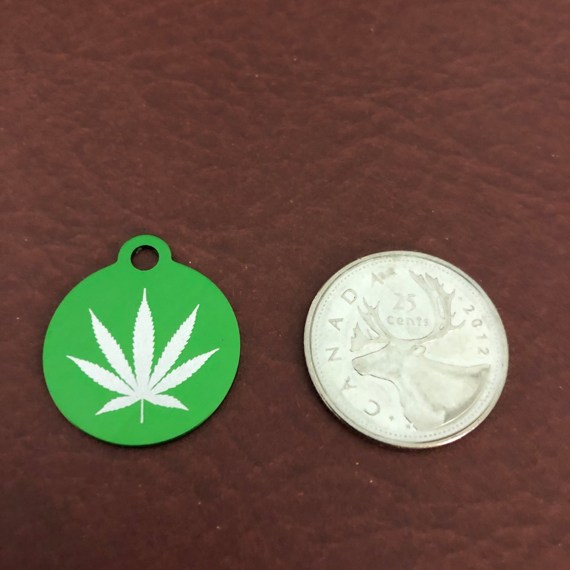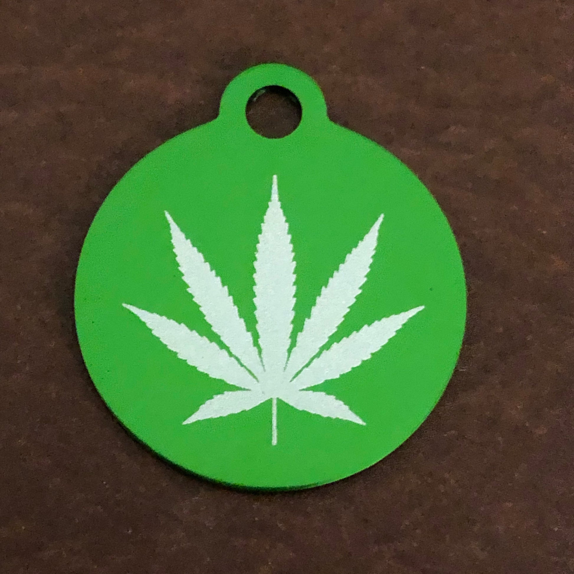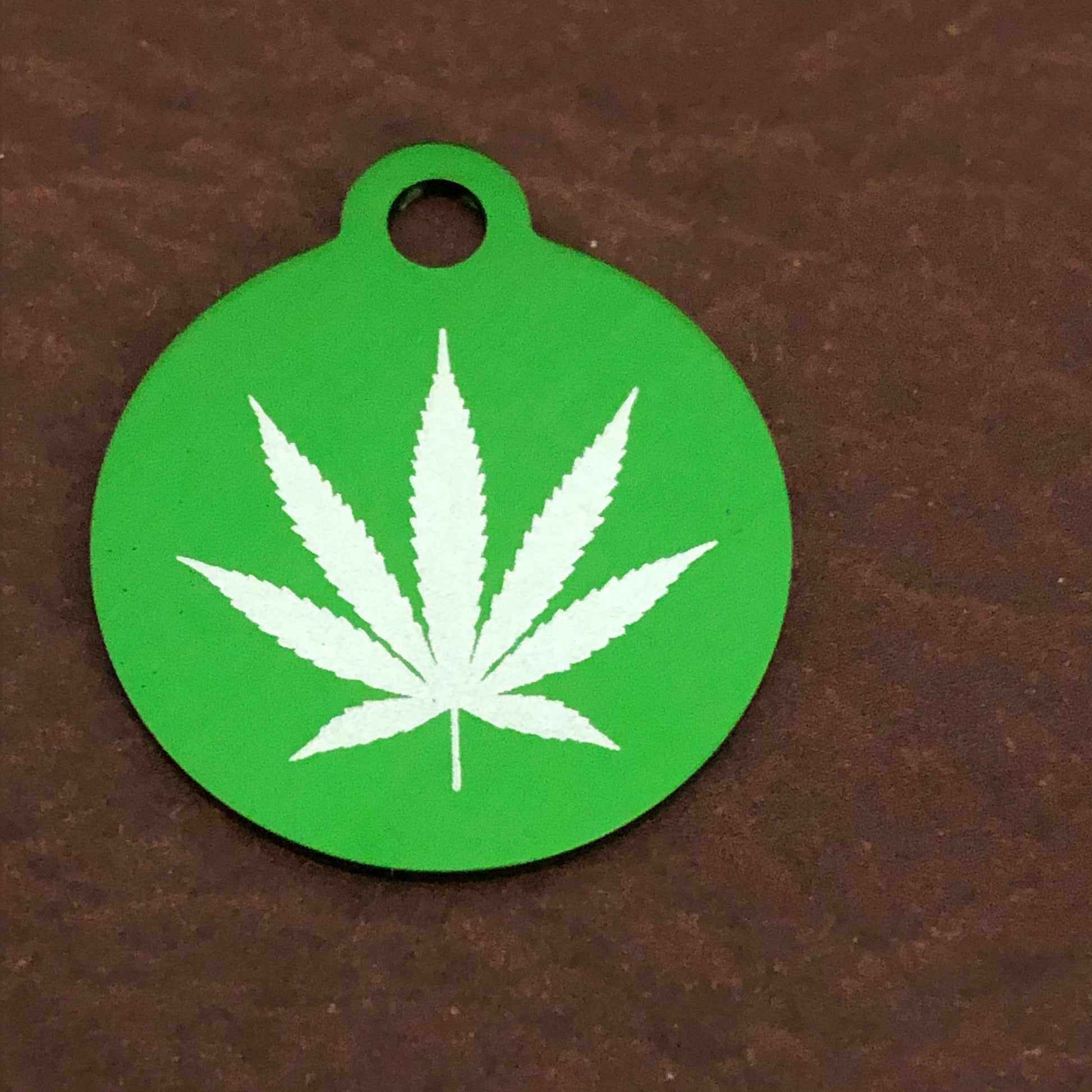 Marijuana Leaf Small Green Circle Aluminum Tag