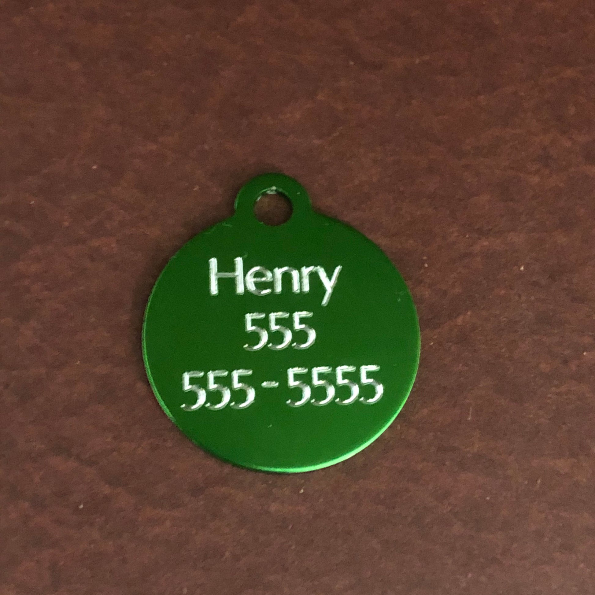 These Small Circle Aluminum Tags measure approximately 7/8"W x 1"H.