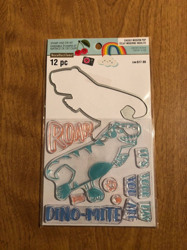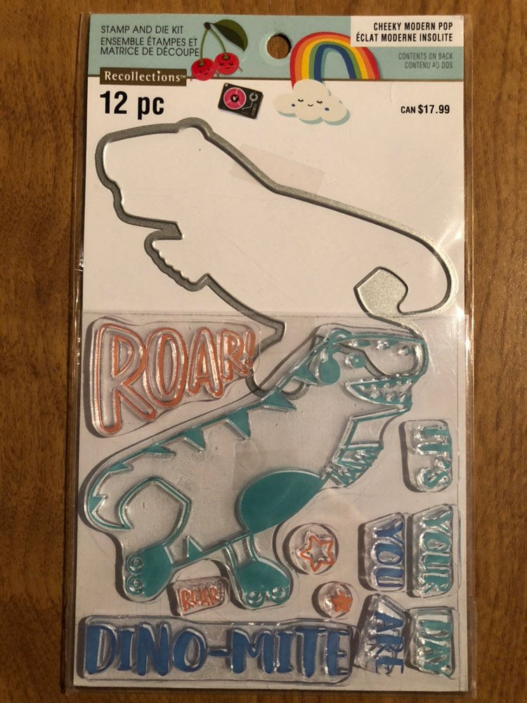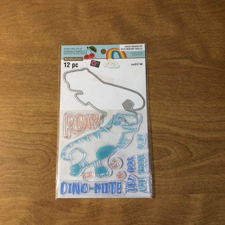 Recollections 12 Piece Cheeky Modern Pop Dinosaur Clear Stamp and Die Kit