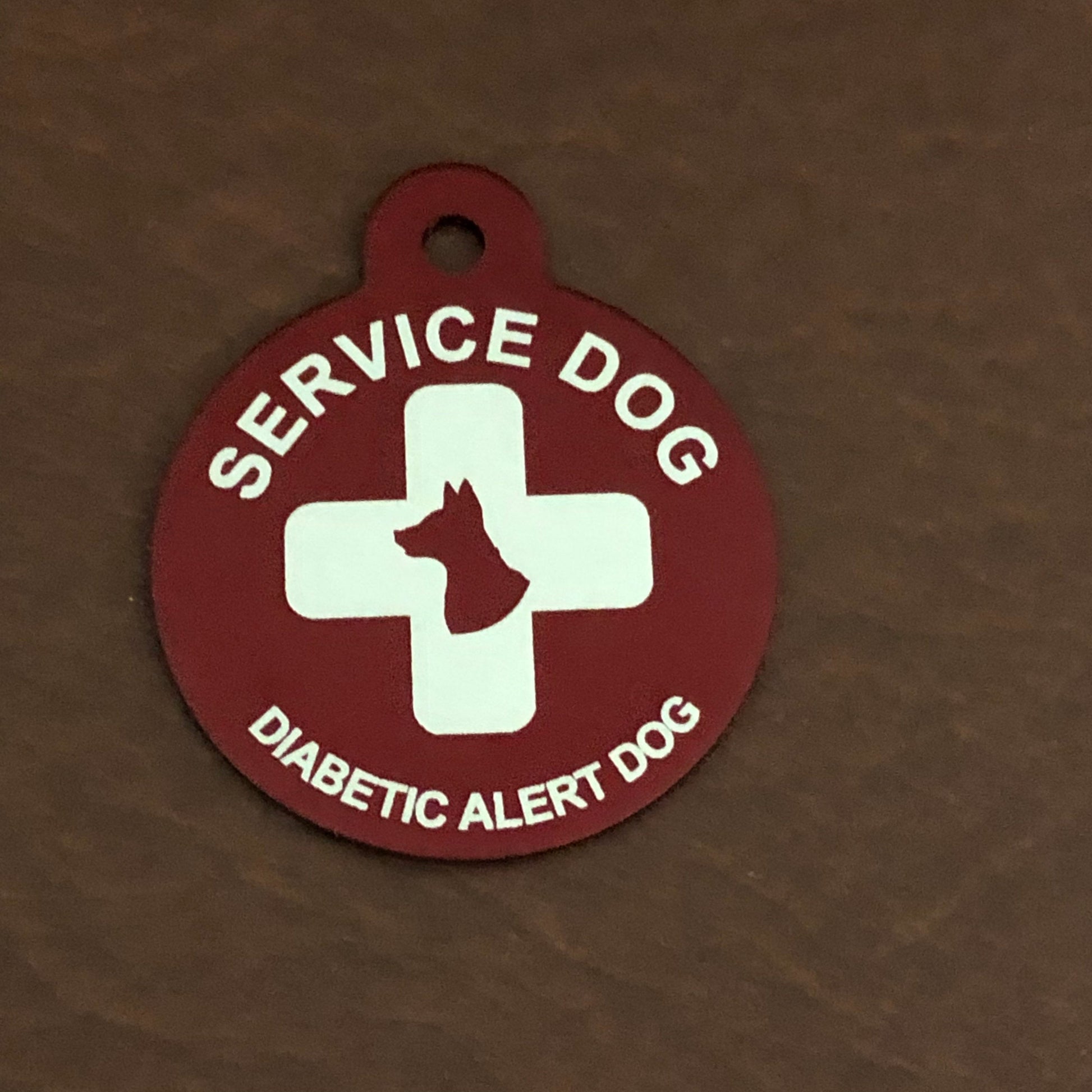 Diabetic Alert Dog Service Dog, Dog Cross Large Circle Aluminum Tag