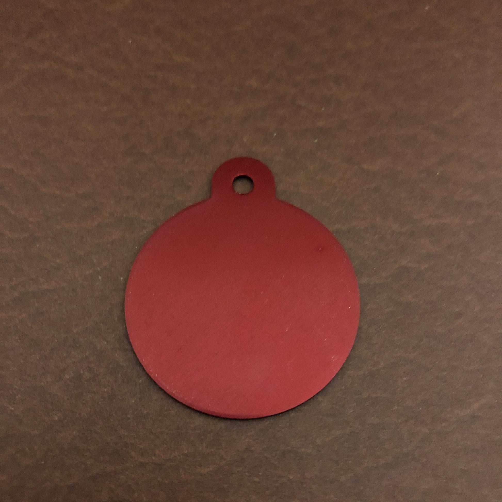 These Large Diabetic Alert Dog Circle Aluminum Tags measure approximately 1 1/4"W x 1 1/2"H.